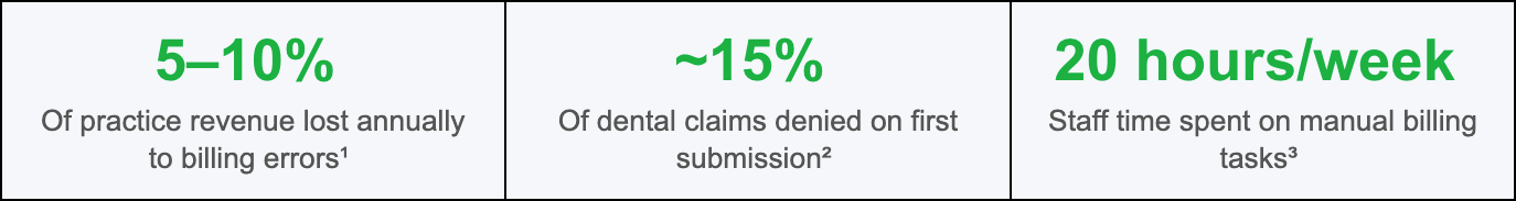 ¹ Outsource Strategies International, “Consequences of Errors in Dental Billing,” 2024.